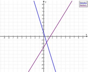 Постройте графики функций \(y = -4x + 1\) и \(y = 2x — 3\) и найдите координаты точки их пересечения. Ту же задачу решите без построения графиков. Сравните полученные ответы.