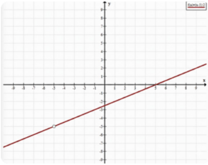 Таким образом, исходная функция равна линейной функции \( y = \frac{x — 5}{2} \), но с исключением точки \( x = -5 \), где функция не определена. На графике это отражается как прерывность — точка разрыва, которая обозначена пустым кружком.